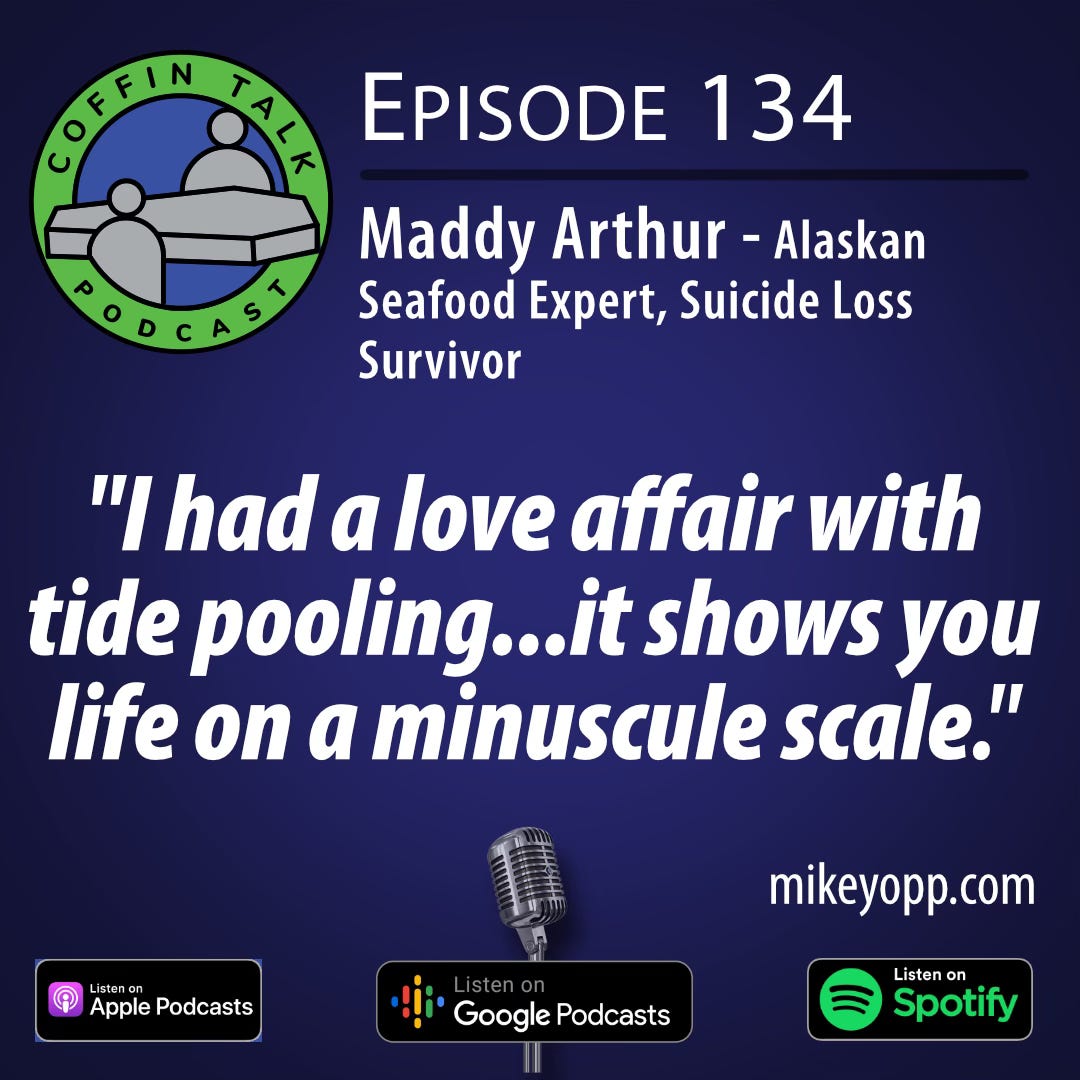 Maddy Arthur is a Gen-Z food scientist, seafood expert, and a survivor of suicide loss. Originally from Northeastern Pennsylvania, she now splits her time between Seattle and some very remote parts of Alaska.
